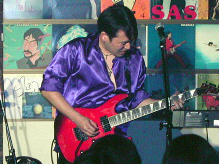 ギター弾きながらのハイトーンボーカル、とってもキツそう・・・。 |